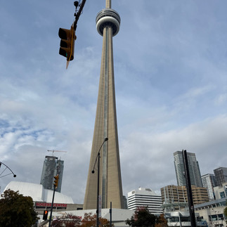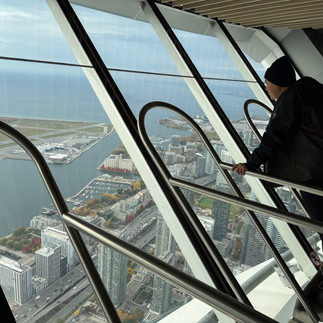 With yummy food, we tried the special Halloween lemonade at Cafe Landwer. After breakfast, it was a short, chilly walk to the CN Tower. The CN Tower offers a variety of tour experiences and we booked the main-level and top-level tickets. The fun started in the elevator. The main viewing level is 114 storeys up (346 metres), and it doesn't take the elevator long to get there. We did a few laps around the main observation deck and then headed up another 33 storeys to the "Top". We will post our perspectives in our updates.
